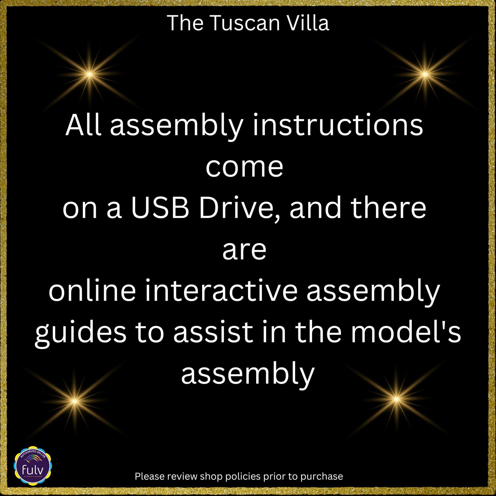 What makes a home?? Answer -A Tuscan Villa. While we may not all be able to afford the real thing, we can now bring one into our homes. I present to you the highly detailed Tuscan Villa model. The model is a multi-part model that requires assembly. The model comes with full assembly instructions on a USB drive with everything needed to ensure an easy assembly process. It's fun and very satisfying when all done. As an added perk, the model also comes with remote lighting that can be installed for that perfect finish Go on, get this eye-catching model today:-) Enjoy