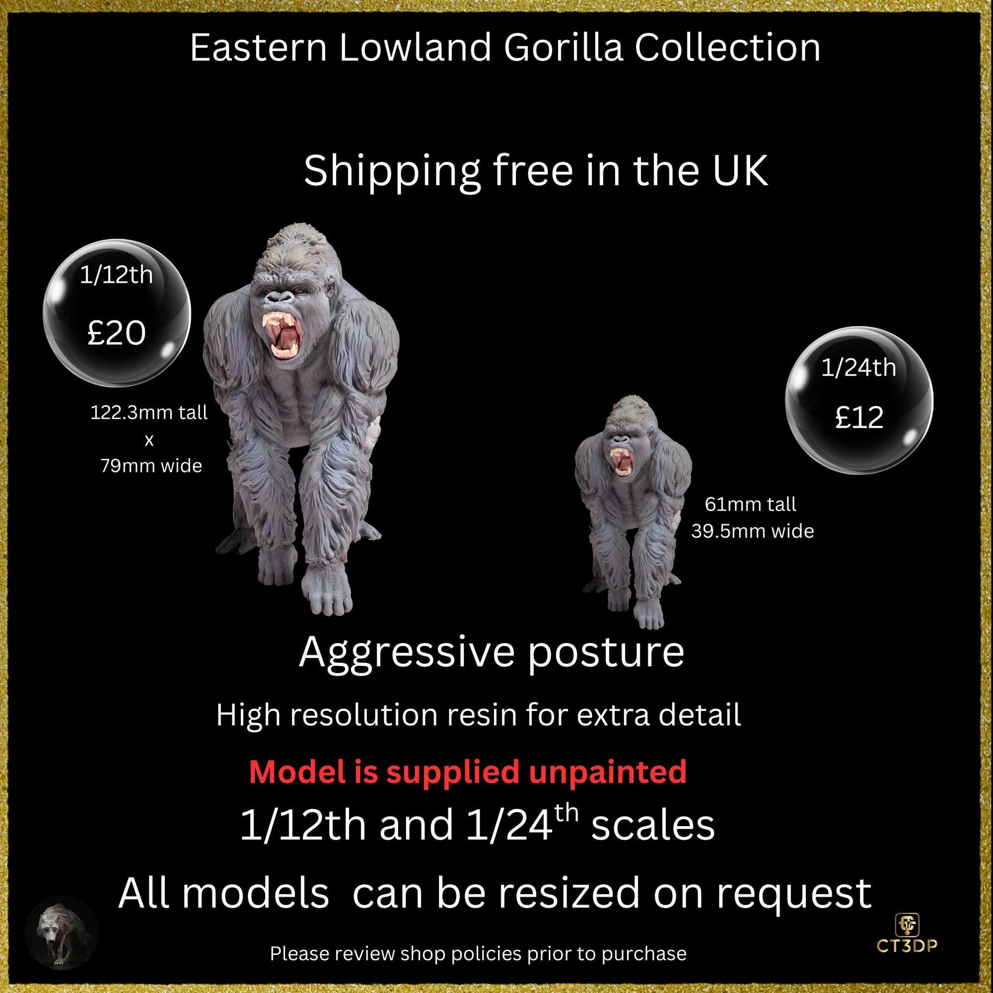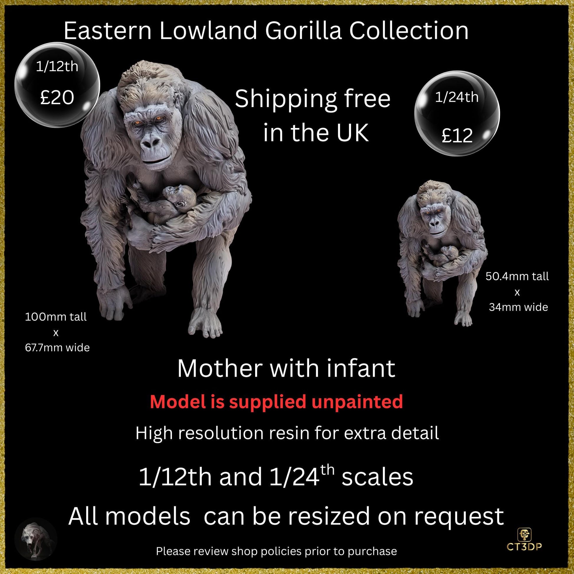 This collection of the eastern Gorillas is superbly detailed in every way. Each model captures the very essence of this majestic animal. They come in two sizes -1/12th scale and 1/24th scale, but you can ask them to be resized. This collection is perfect for any collector of miniature animal models.