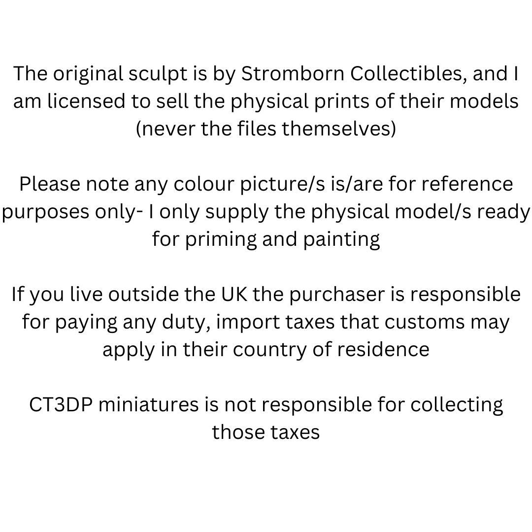 This company is officially licensed to sell physical prints of the Stormborn Collectibles. Original files digital .stl files of this model can be purchased by joining Stormborn Collectibles at: